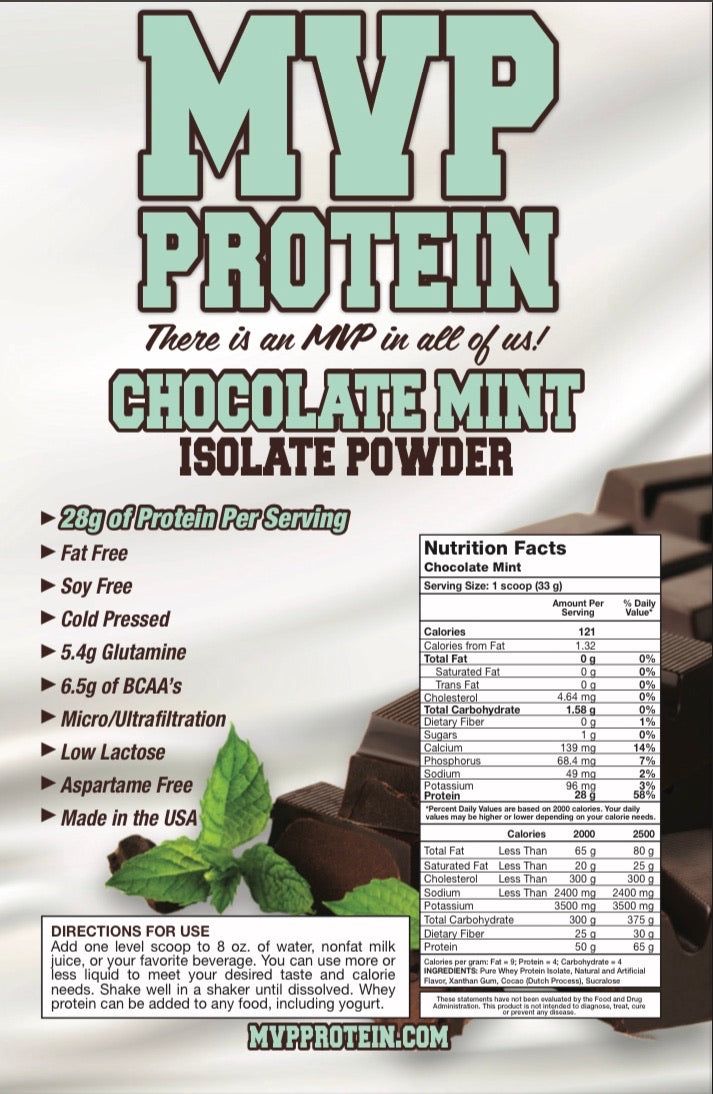 “MVP PROTEIN” “CHOCOLATE MINT” Whey Isolate Protein Powder