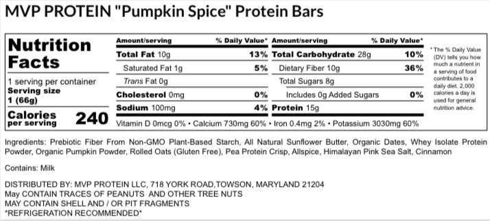 MVP PROTEIN "PUMPKIN SPICE" Protein Bar