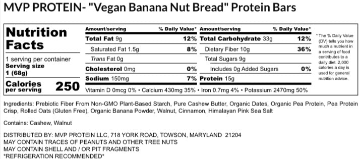 MVP PROTEIN-"VEGAN BANANA NUT BREAD" Protein Bar